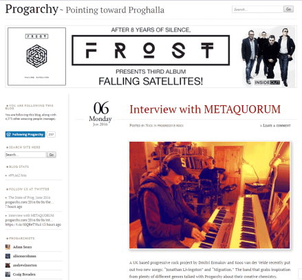 A UK based progressive rock project by Dmitri Ermakov and Koos van der Velde recently put out two new songs: “Jonathan Livingston” and “Migration.” The band that grabs inspiration from plenty of different genres talked with Progarchy about their creative chemistry.