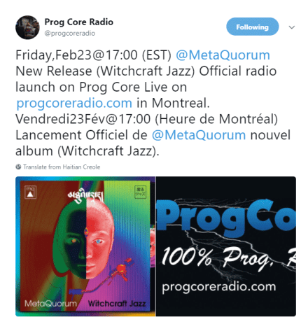 Tomorrow WITCHCRAFT JAZZ has its very own radio launch with Denis Champagne at Prog Core Radio